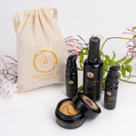A radiant ritual crafted in the heart of The Ojai Valley. This set features four of our most universally nourishing formulas—each chosen for their ability to bring balance, hydration, and glow to all skin types. Made with ingredients like raw local Ojai honey and vibrant botanicals like orange blossom, lavender, rose, and calendula, this collection offers a true sensory experience of Ojai in full bloom. Beautifully wrapped in a linen bag with step-by-step directions, it's the perfect gift for weddings, retreats, or any special occasion.